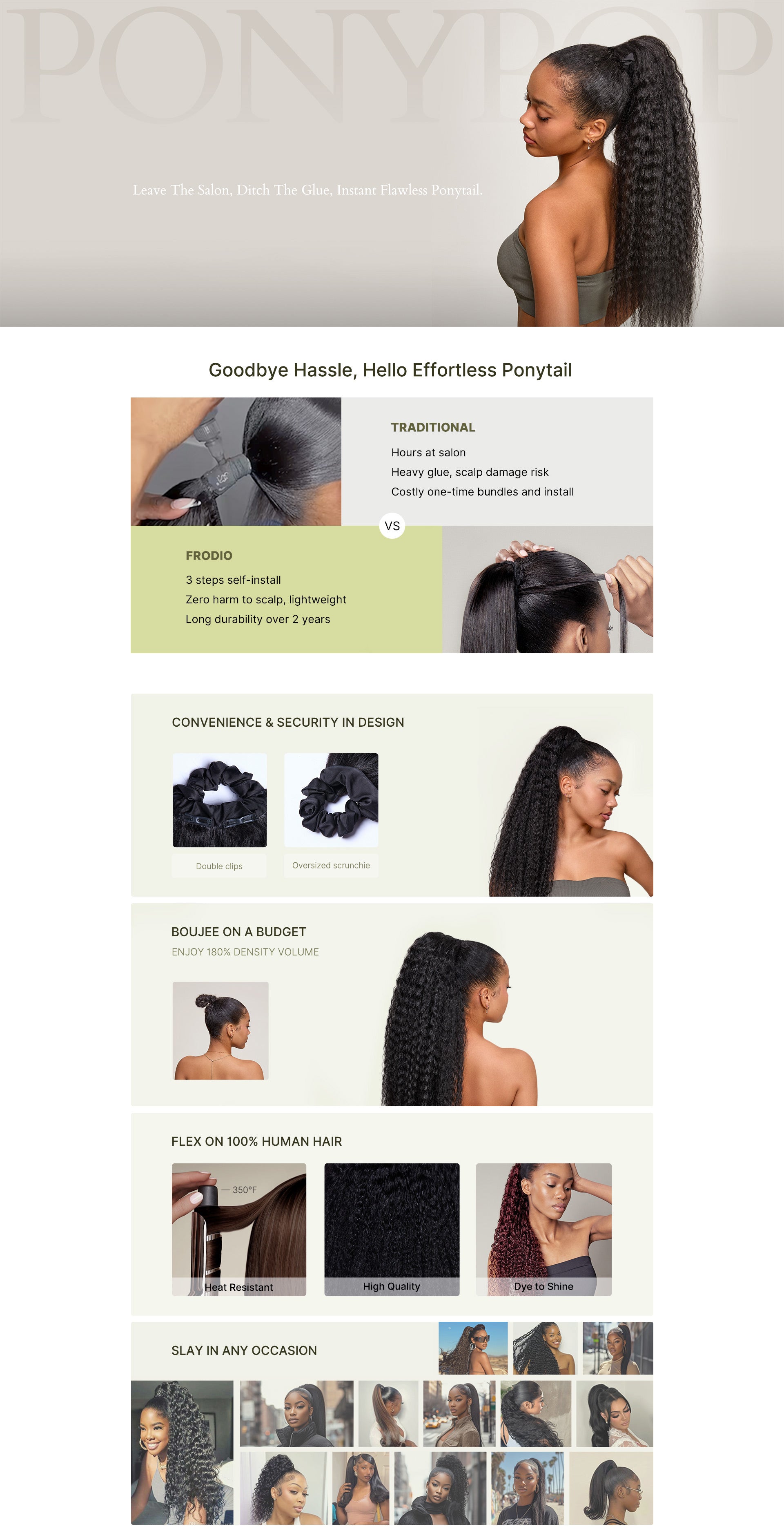 Frodio Ponypop Natural Black Boho Curl Scrunchie Ponytail Human Hair - Tiana