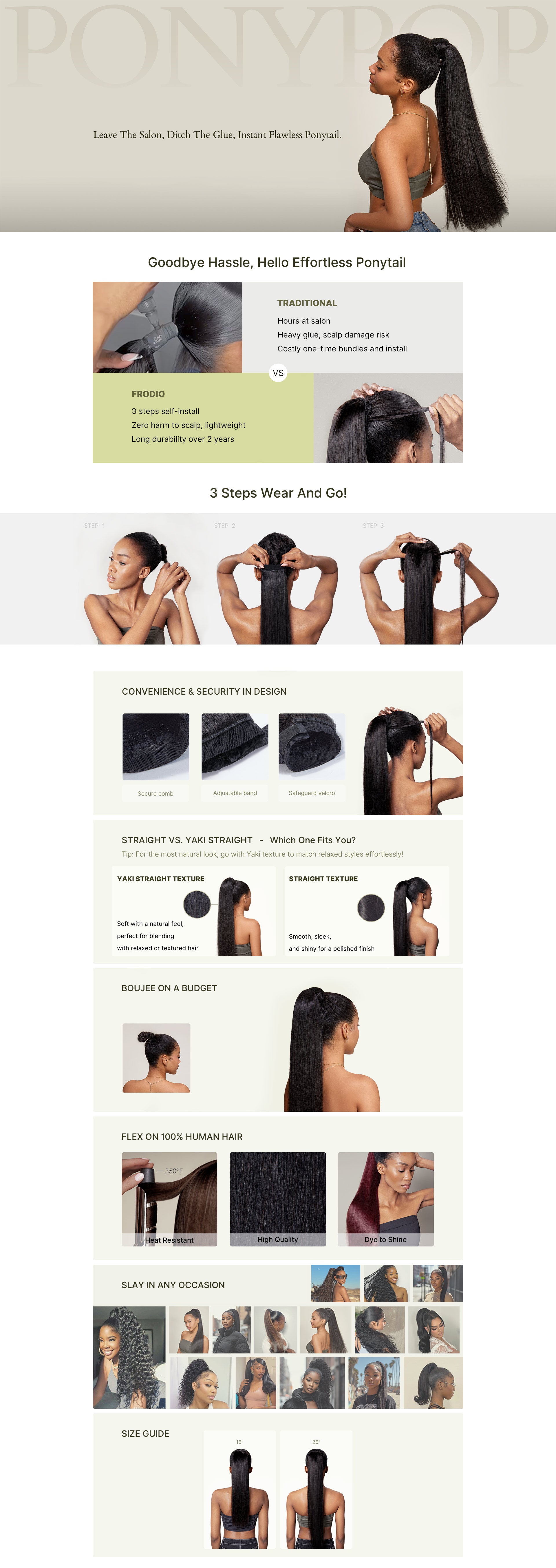 Frodio Ponypop Natural Black Yaki Straight Wrap Around Ponytail Human Hair - Nia