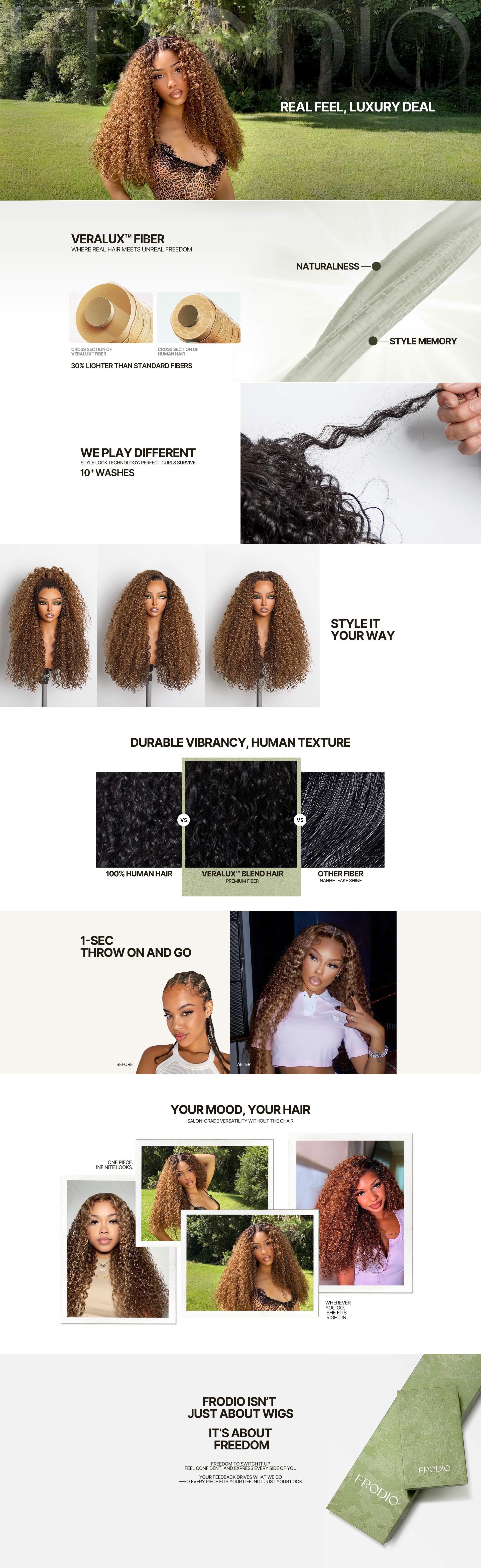 Frodio Veralux™ 13x6 HD Lace Wig Glueless Wear Go Wig 24” Golden Chestnut Curly Premium Fiber Wig – Full Density, Beginner Friendly