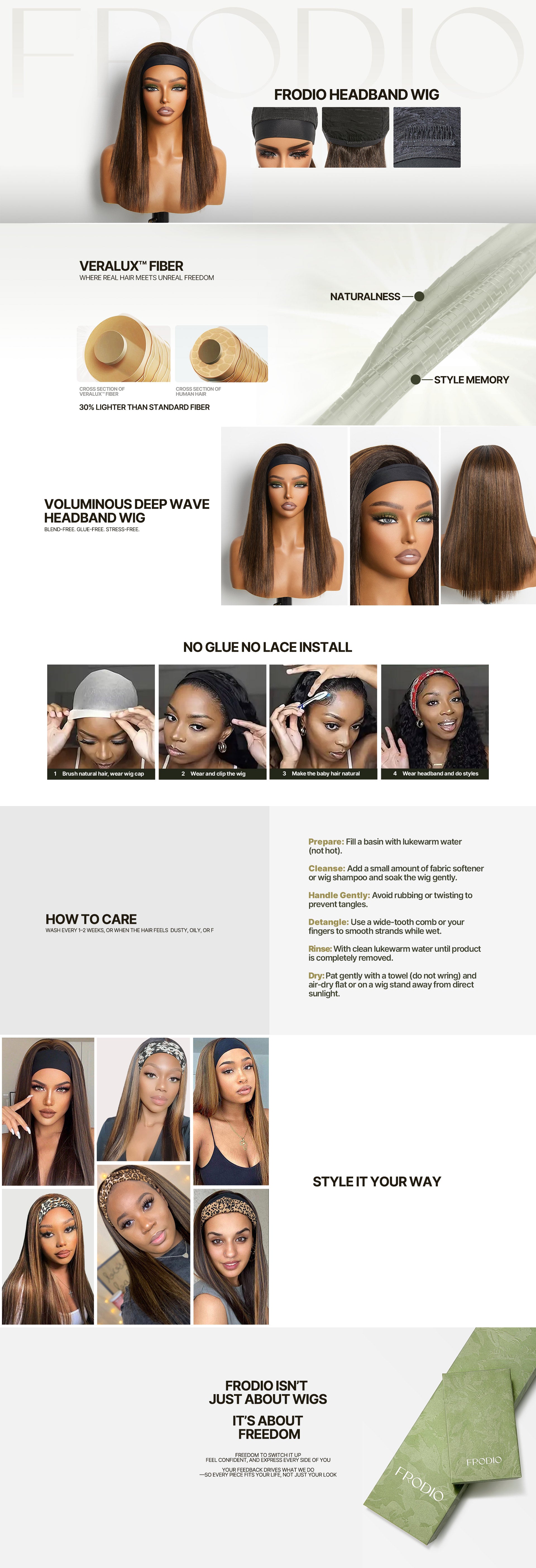 Frodio Veralux™ Fiber 16″ Highlight Headband Wig Straight Hair with Head Band Ready to Go Glueless Synthetic Headband Wig Brown Mix Blonde Straight Wig